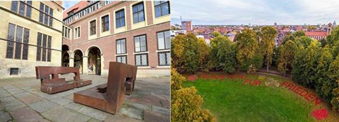 Auf dem Platz des Westfälischen Friedens befindet sich die Skulptur "Toleranz durch Dialog", die Eduardo Chillida zum 1200-jährigen Stadtjubiläum 1993 geschaffen hat.
